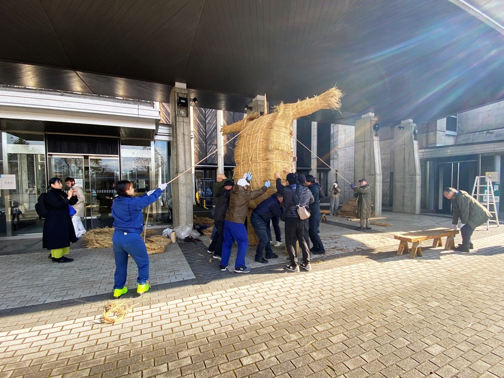 今回のイベントにご参加いただいた皆さま、秋田公立美術大学の教員、学生、事務局の皆さま、ご協力いただいた秋田銀行様、そしてご指導いただいた末野集落の皆さま、松橋敬子さん、稲わらを提供していただいた妙法集落の皆さま、たそがれファームさん、本当にありがとうございました!