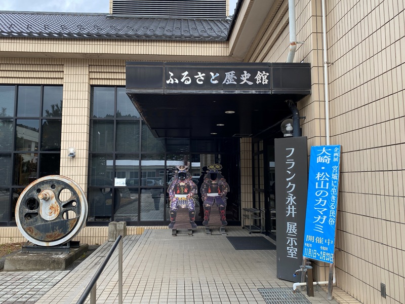 続いて訪れたのは、大崎市の松山歴史ふるさと館です。ここでは「大崎、松山のカマガミ」をテーマにした展示が開催されていました。あいにく館内は撮影禁止でしたが、多種多様なカマガミが並ぶ様子は圧巻の一言。松山が瓦の産地であったことに由来する瓦製をはじめ、木製、セメント製、さらには木柱に土を巻き付けて造られたものまで、そのバリエーションの豊かさから、地域に根付いた信仰の形をうかがい知ることができました。