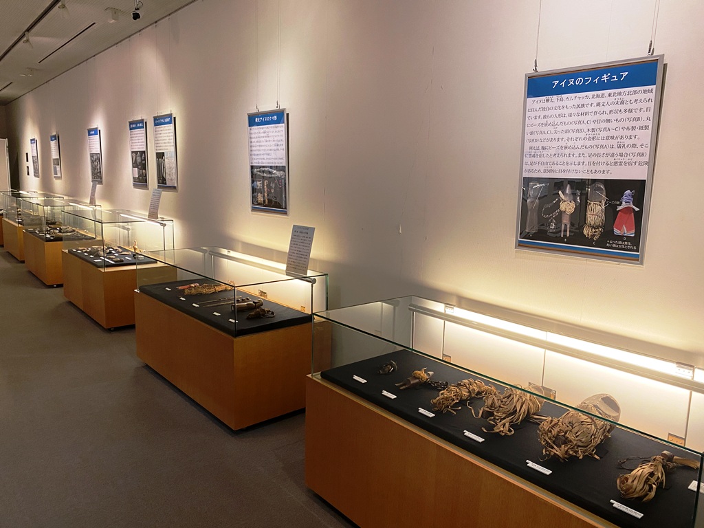 この日最初の目的地は、村田町歴史みらい館で開催中の特別展「フィギュアの文化史」です。こちらは「宮城に生きる民俗」の関連企画ではありませんが、人形研究家としてはどうしても見ておきたい展示でした。会場では、東北大学が所蔵する樺太アイヌの貴重な資料、そして縄文時代の土偶がひときわ目を引きました。