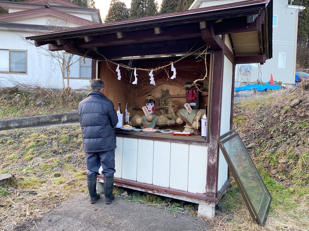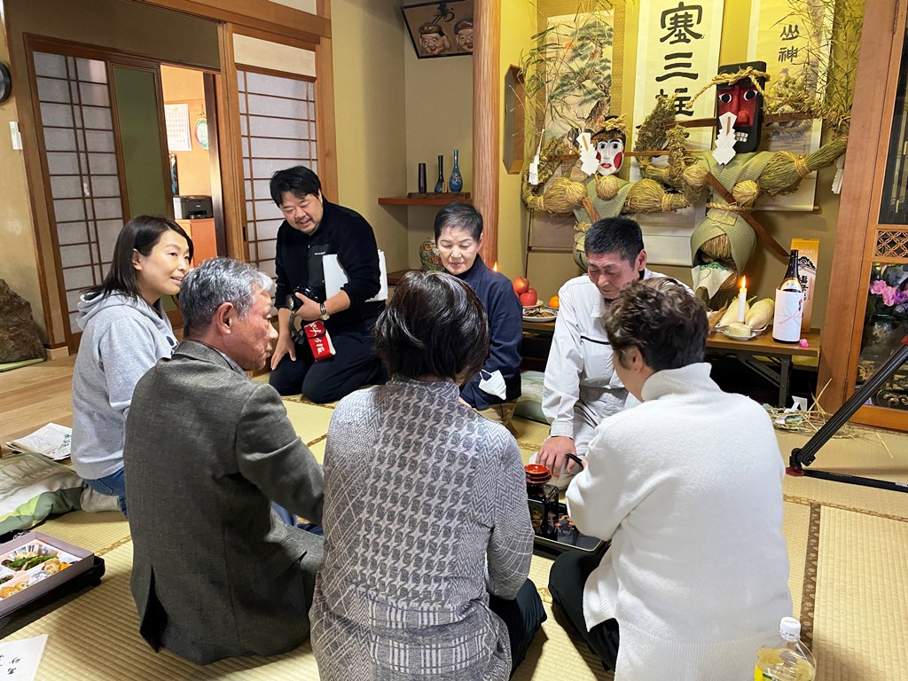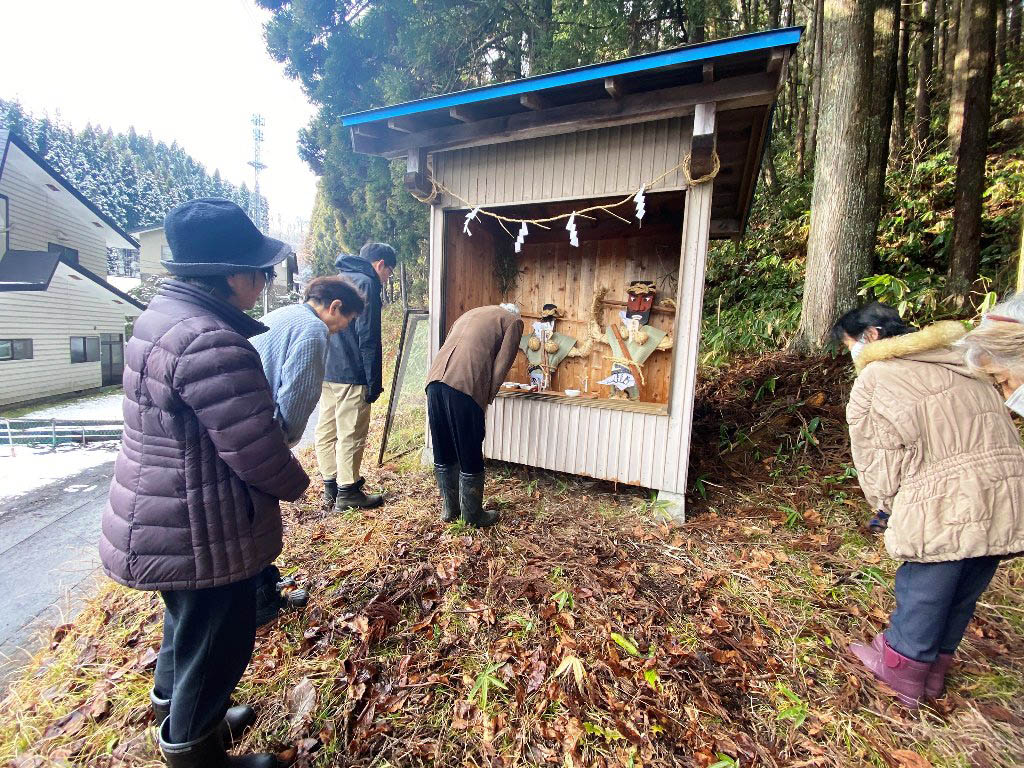 その後も、2021年は人形作りを見学、2022年は講演会の開催や文化庁の伝承事業による3泊4日の密着取材、2023年には大館市ニプロハチ公ドームでの「新・秋田の行事」におけるワークショップ開催と、交流は続きました。そして昨年(2024年)も宮原さんと共に訪れ、神官さんによるお祓いを見学しました。こうして振り返ると、この7年間、毎年欠かさず山田に通っていることに気づきます。秋田県内で人形道祖神を祀る集落は数多くありますが、これほど継続して通い続けているのは、横手市末野とここ山田くらいです。