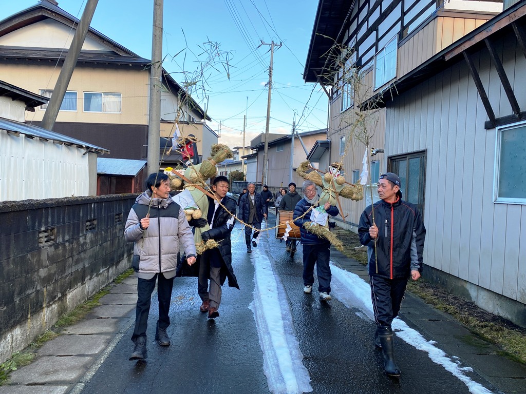 当日は秋田魁新報(ジンジョ祭りの記事)や北鹿新聞、NHKなどのメディアが取材に訪れ、NHK秋田放送局の「ニュースこまち」では12月25日に「山田地蔵祭り次世代に」と題した特集が放送されました(12月30日現在、NHKONEで配信中)。 このようにメディアの注目が集まる一方で、祭りの参加者は年々減少しており、存続が困難になりつつあるという課題も抱えています。こうした状況を踏まえ、赤坂さんは、祭りの保存に向けた組織づくりを来年から進めていきたいと考えています。